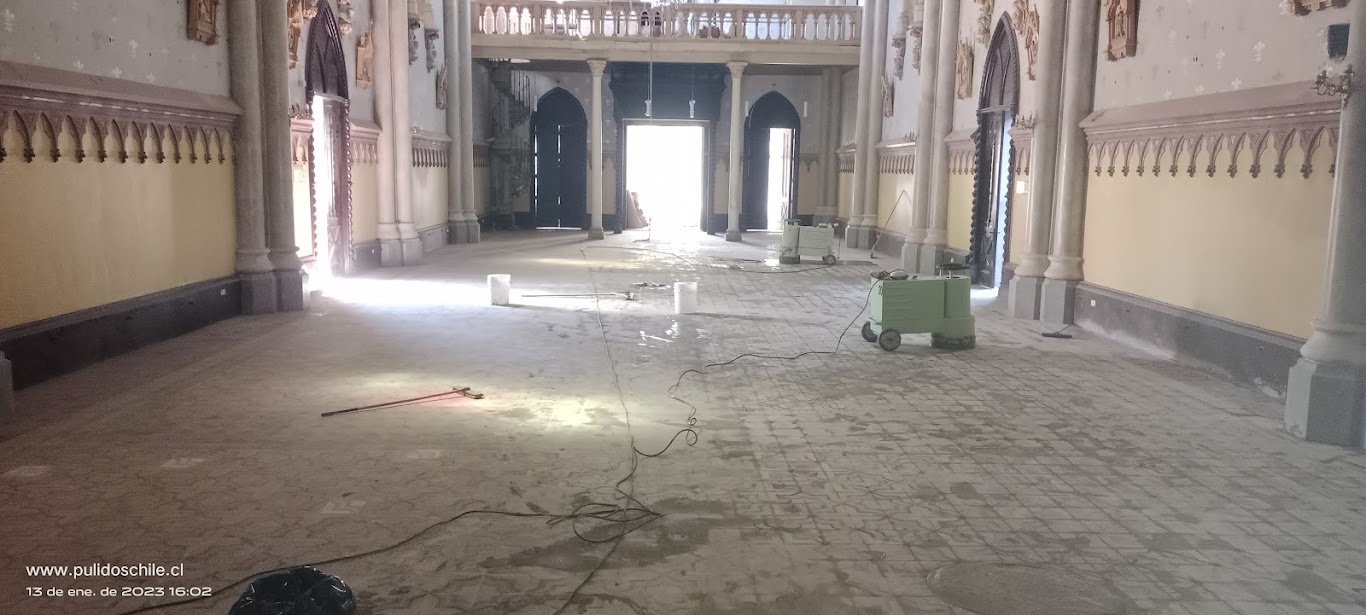 Pulido vitrificado en Iglesia Santísimo Sacramento de Santiago ( capilla de Gendarmería de Chile declarada monumento histórico )